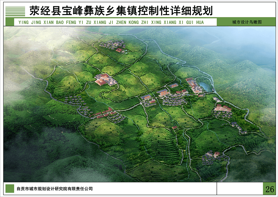 以农业经济现代化和旅游事业特色化为动力源,农、旅联动推进宝峰乡人口就地城镇化,乡村生活点融入茶园、竹林有机生长,形成分工协作、有利生产组织、有利职能提升的公服配置体系。相对分散的聚落布局,融合当地彝寨环境特色,展现高山空间层次,创造地方特色风情,造就宝峰全域发展格局。