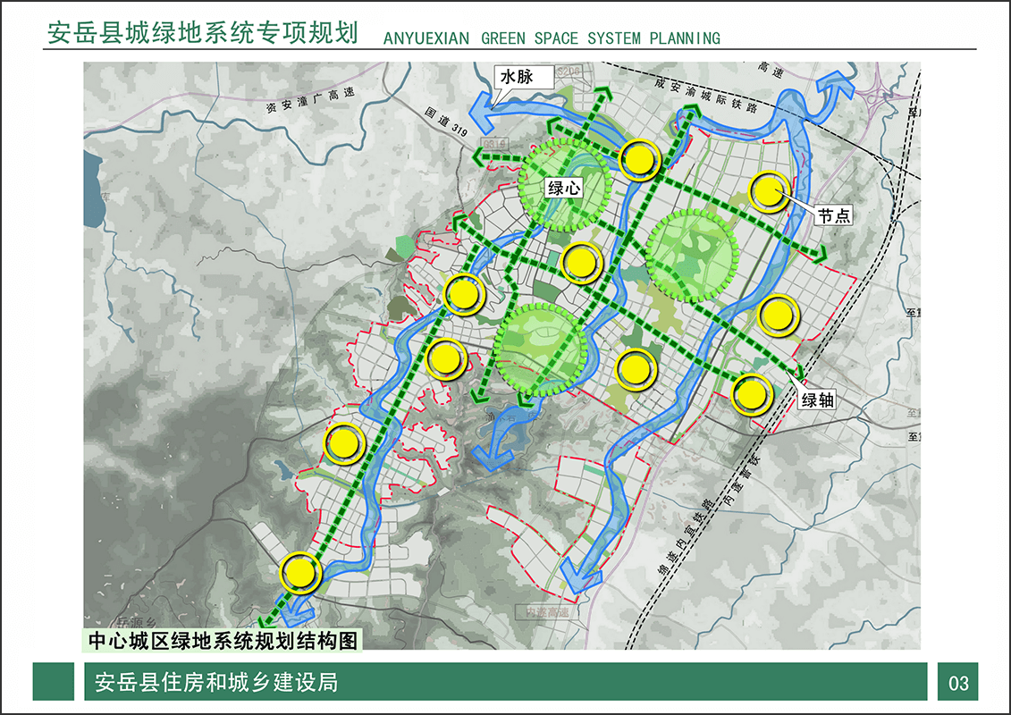 规划目标:充分依托建成的绿地成果,以绿色基础设施理论为基础,以创建园林城市、生态城市为载体,以江河、山林为绿脉,以历史文化为特色,以项目建设为支撑,以居住区和庭院绿化为普及环节,以街头绿地为点缀,以道路绿化和城市组团间隔离绿带以及防护林带为网络,以文化广场、绿化广场为亮点,围绕“中国柠檬之都”和“中国佛雕之都”的城市特色,打造 “水绿交融,城在园中”的绿色生态空间格局,建成生态文明,健康宜居、人与自然和谐共处、地域特色鲜明的自然山水园林城市的绿地风貌特色。